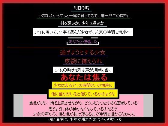駆け落ちをしようと海岸で●●を待っていた少女を、通りすがりのあなたが攫った。