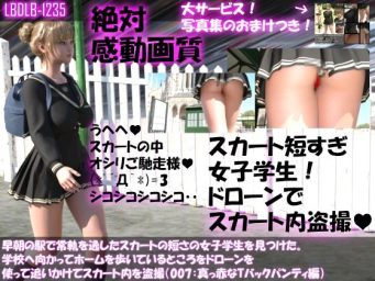 同人CG 【同人】早朝の駅で常軌を逸したスカートの短さの女子学生を見つけた。学校へ向かってホームを歩いているところをドローンを使って追いかけてスカート内を盗撮(007:真っ赤なTバックパンティ編)(Libido-Labo)